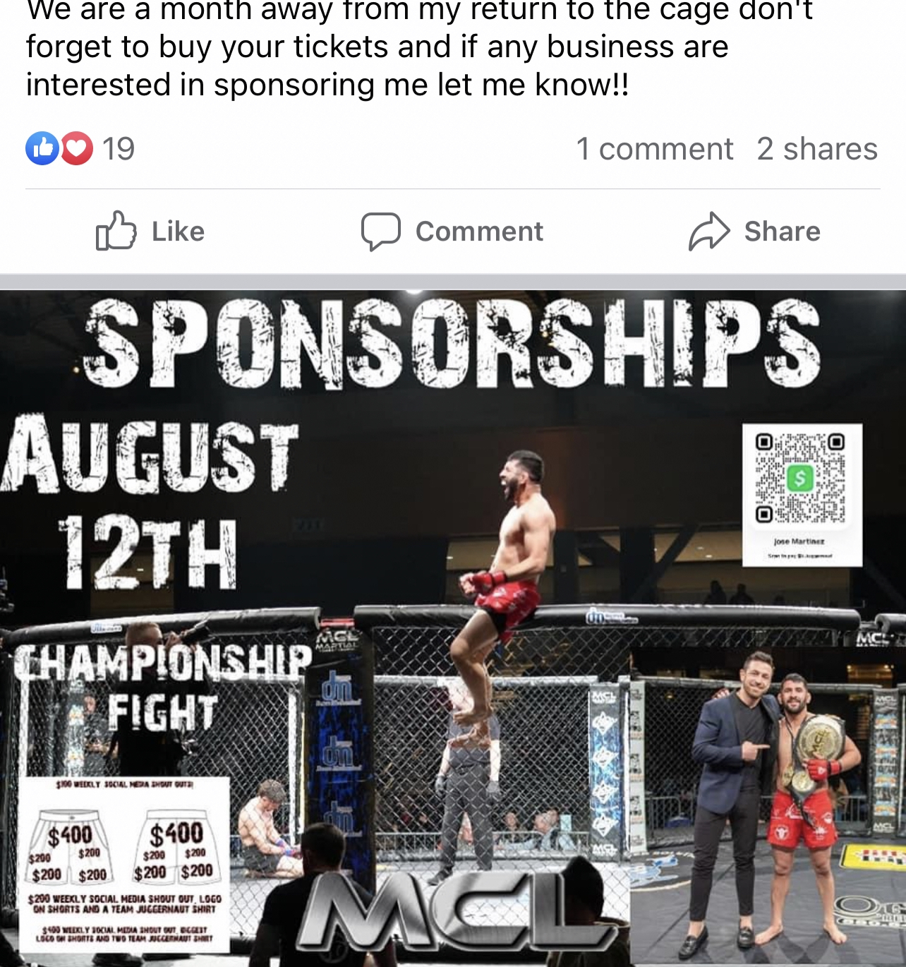 Monster sports covers all aspects of fundraising for your promotion and your fighters. facilitating sponsorship, crowd funding, affiliate deals, and social media revenue. Your promotion and fighters have accounts with each sponsor. People donate directly to your account with the sponsor for you to use.